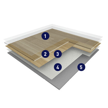 Покриття складається з ущільненої основи, армованої скловолокном, і друкованого малюнка, захищеного прозорим зносостійким шаром (товщиною 0,70 мм).